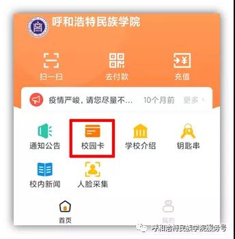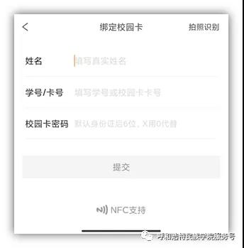 点击“校园卡”绑定校园卡信息