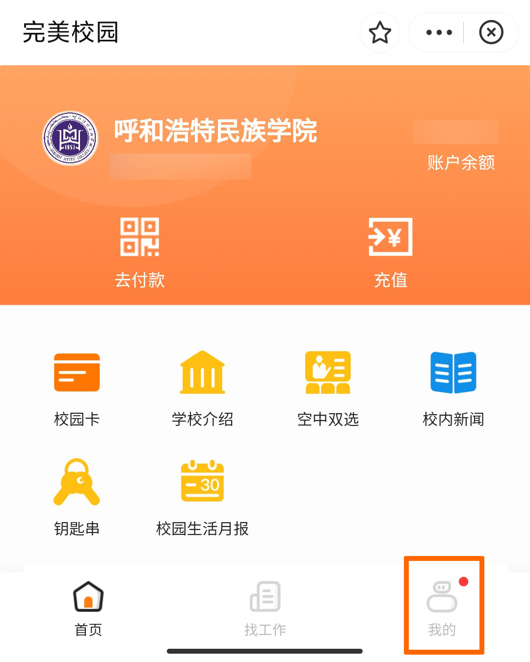 打开“完美校园”小程序