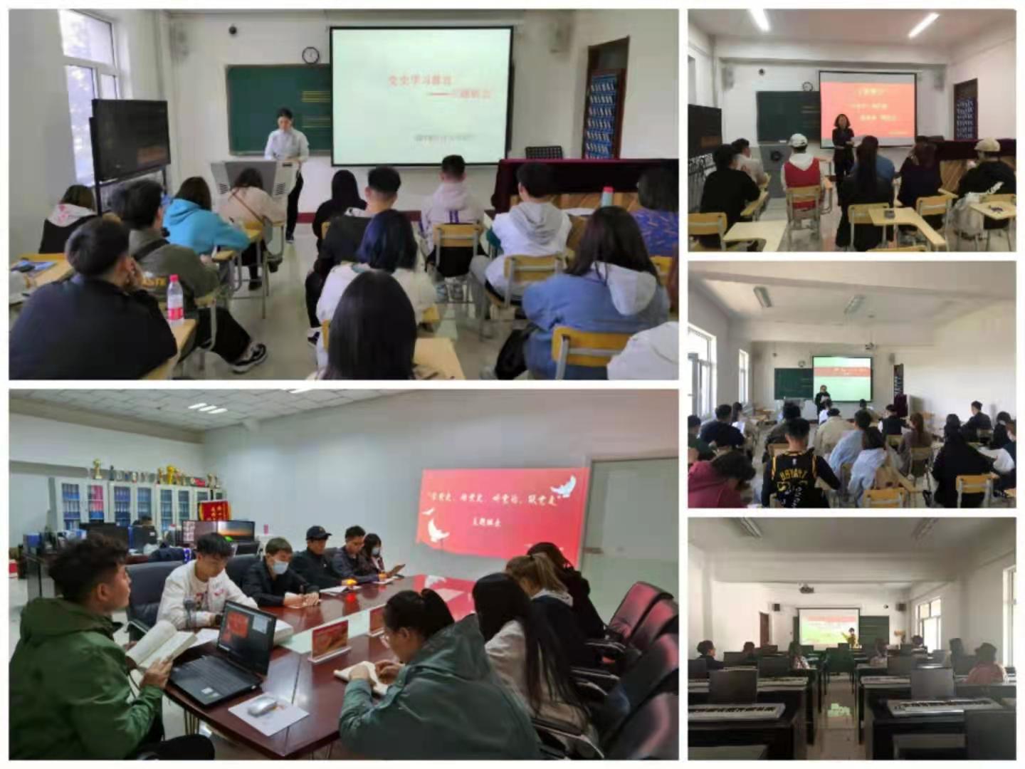 为深入贯彻党史学习教育,加强学生的爱国主义教育,弘扬爱党爱国情怀,引导青年知史爱党、知史爱国。根据学生处《关于开展“学党史、悟思想、听党话、跟党走”主题班会通知》的文件精神,音乐学院学工办于4月12至4月20日全面组织开展了“学党史、悟思想、听党话、跟党走”主题班会活动。