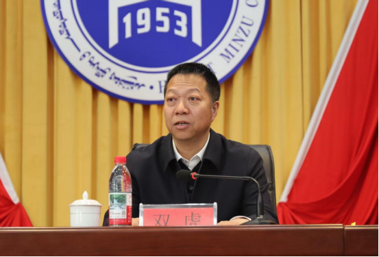 4月24日,学校邀请中央民族大学研究员、中国音乐学院特聘博士生导师乌兰杰到校作“铸牢中华民族共同体意识与蒙汉音乐交流”学术讲座,校党委委员、副校长双虎主持讲座。