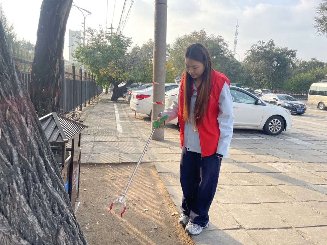 文化传承的使命在心底扎根,这份赤诚便化作俯身实践的热忱。红马甲的亮色,很快铺满了古院的角落,同学们整理展陈周边的环境——每一次弯腰,都是对文化遗产的珍视;每一处清扫,都是对“共同体家园”的呵护。