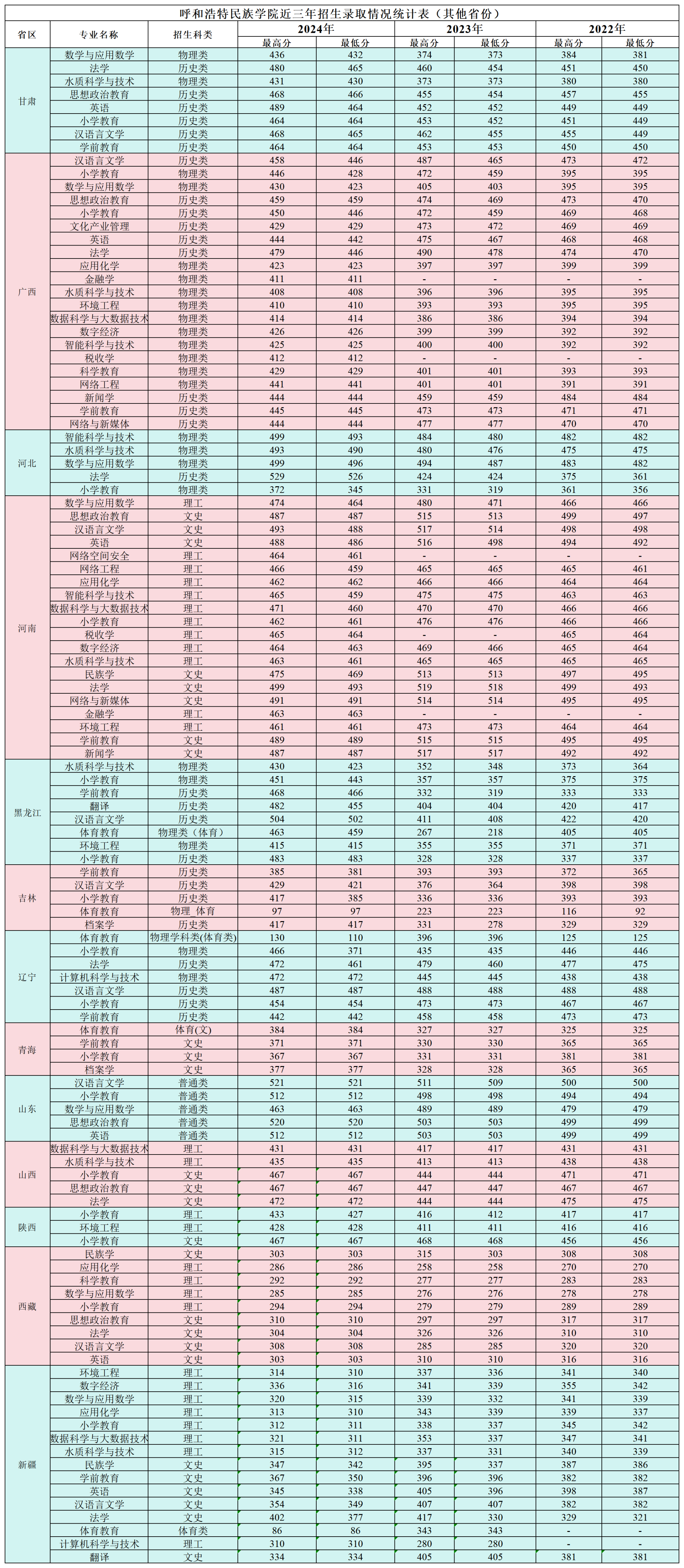Beat365唯一官方网站近三年招生录取情况统计表(其他省份)