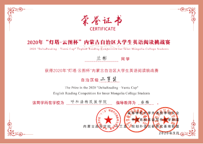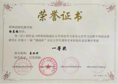 郭志芳同学获得“外研社国才杯”全国英语演讲大赛内蒙古赛区三等奖